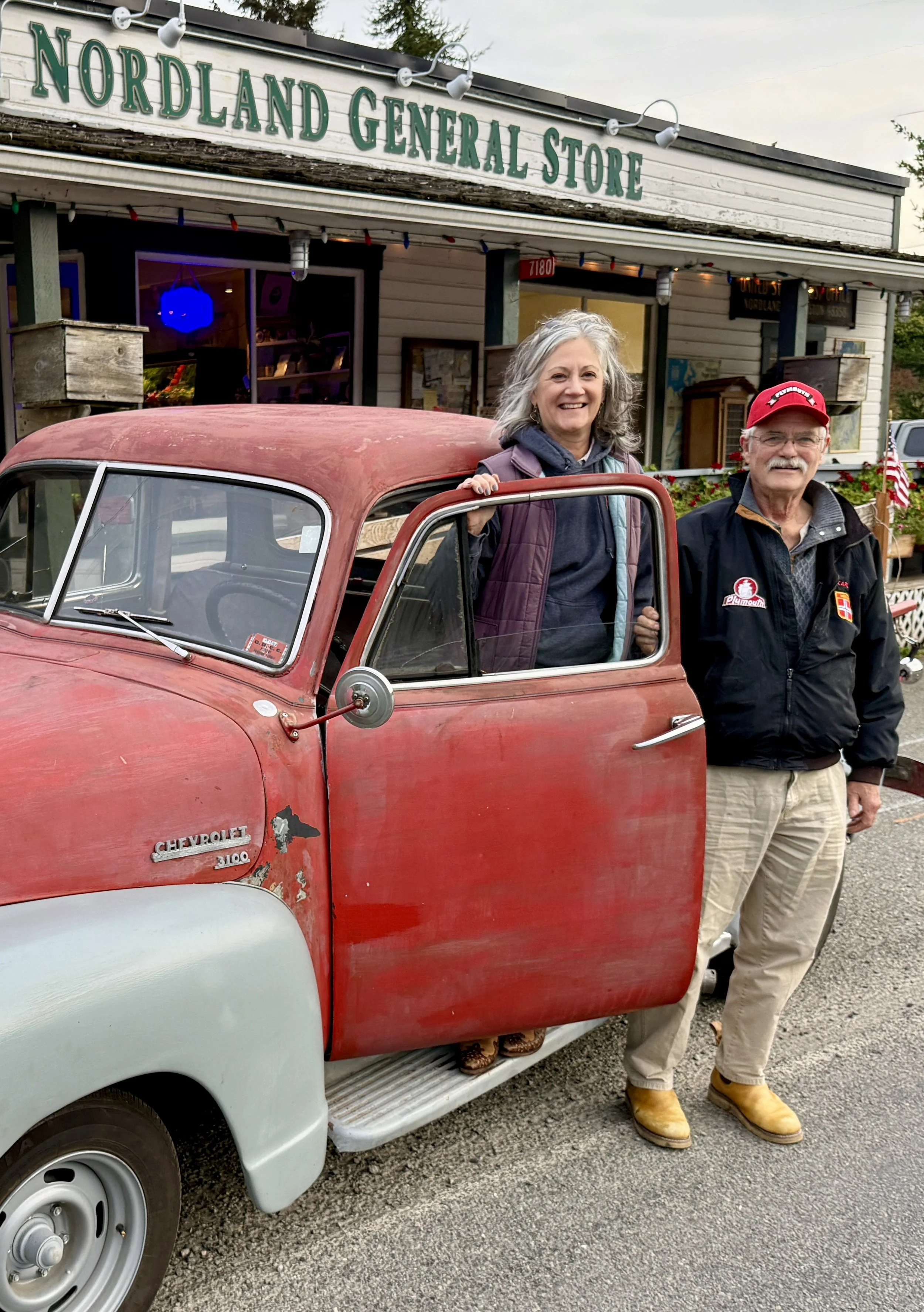 Joanna and Carl rolled up in their 1951 Chevy truck to see what we’ve done with the store.