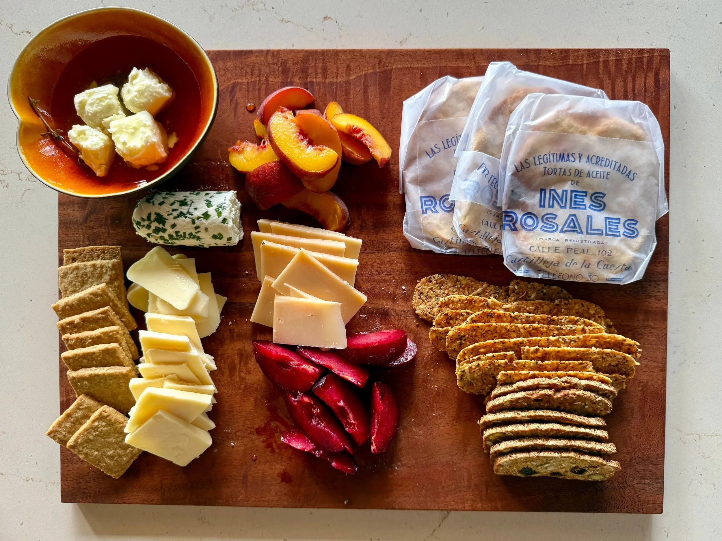 Want to wow visitors with almost no effort? Grab a mix of creamy and bold cheeses, sweet and savory crackers, and juicy stone fruit. Pile it all on a locally made wooden board and voilà, you’re ready for a delicious gathering.