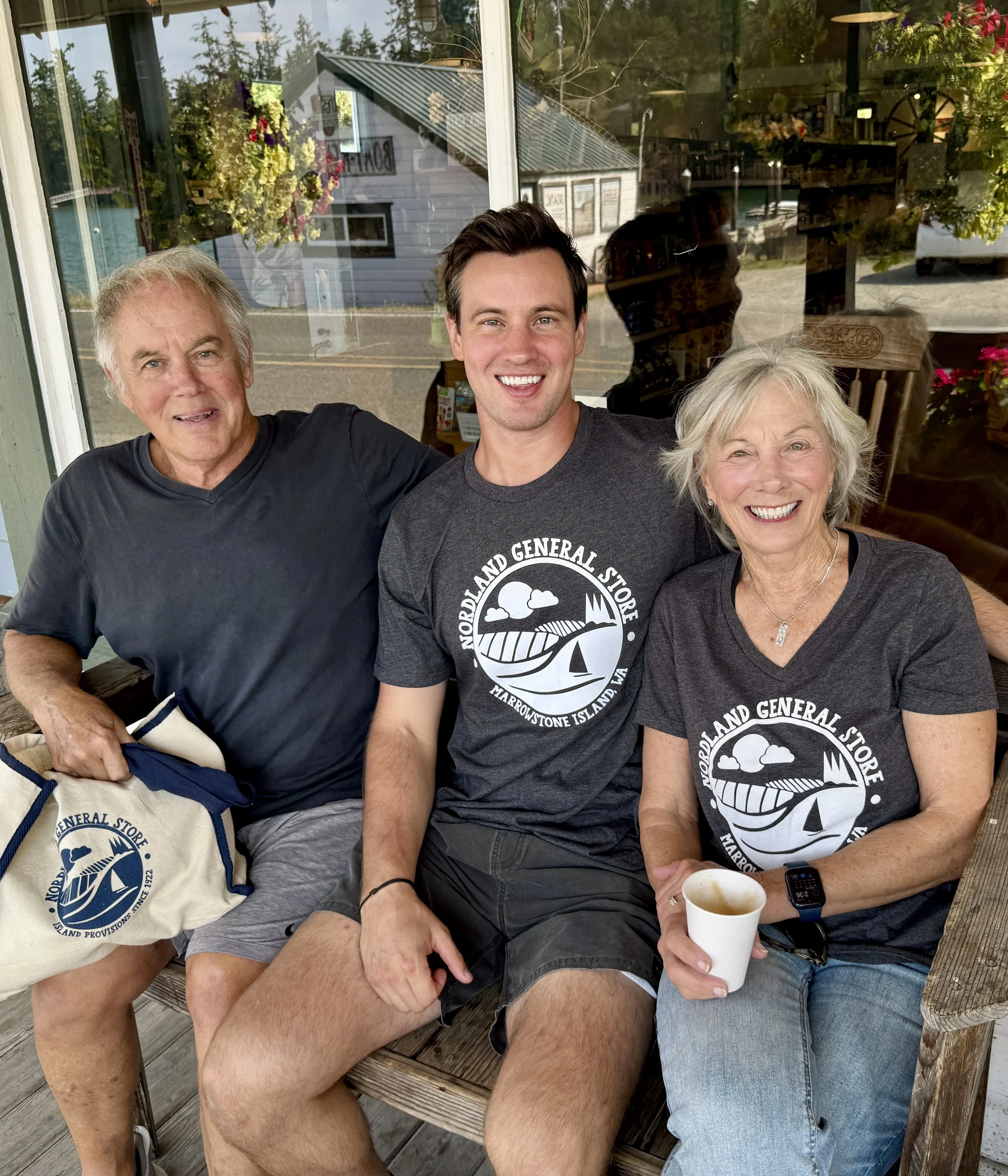 Seattle-based but summering and weekending on Marrowstone, they’ve owned their island log cabin for over a decade. Mazy laughed about sleeping in the attic with bats before a few upgrades. They were thrilled when our store reopened after the fire, both for shopping and as a community hub. From vegan jerky to coconut water to Cearra’s cowboy cookies, this kind family had nothing but praise for our selections. And Mazy, yes, we’re hunting down that toilet bowl candy you remember so fondly!